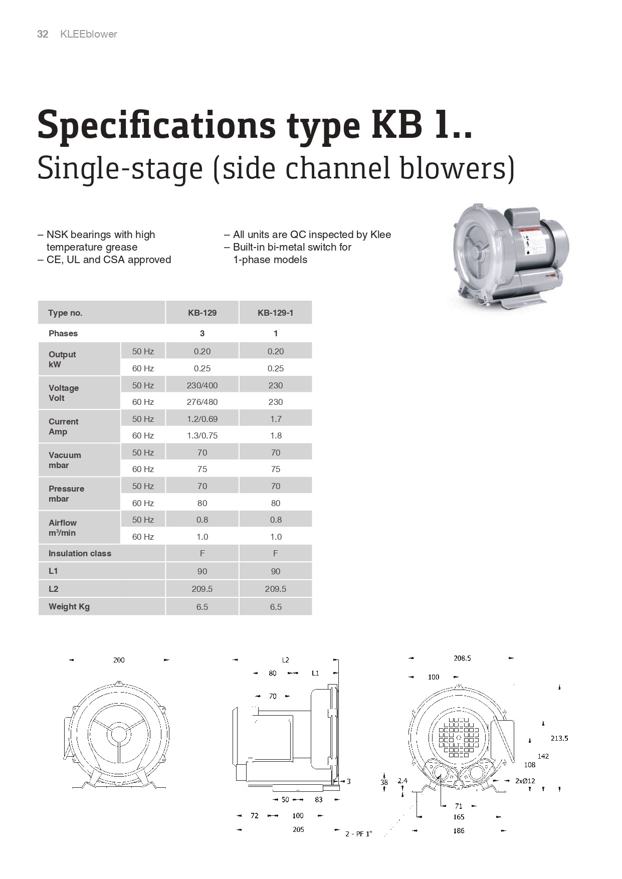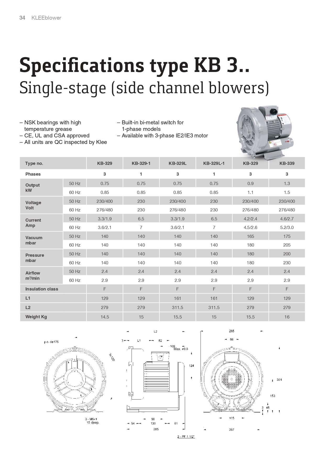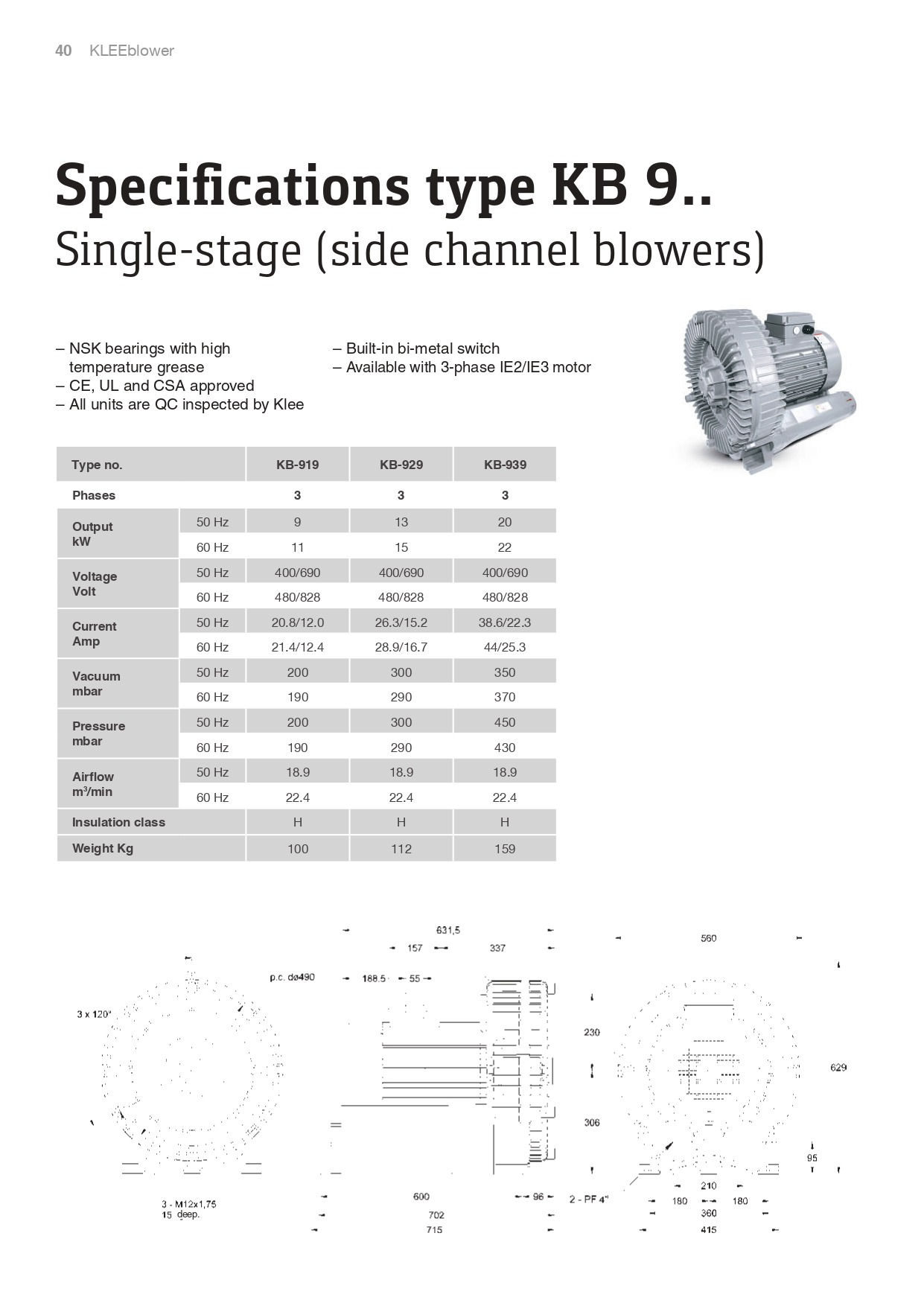 KLEE Turbo Blowers Specifi cations type KB 09
