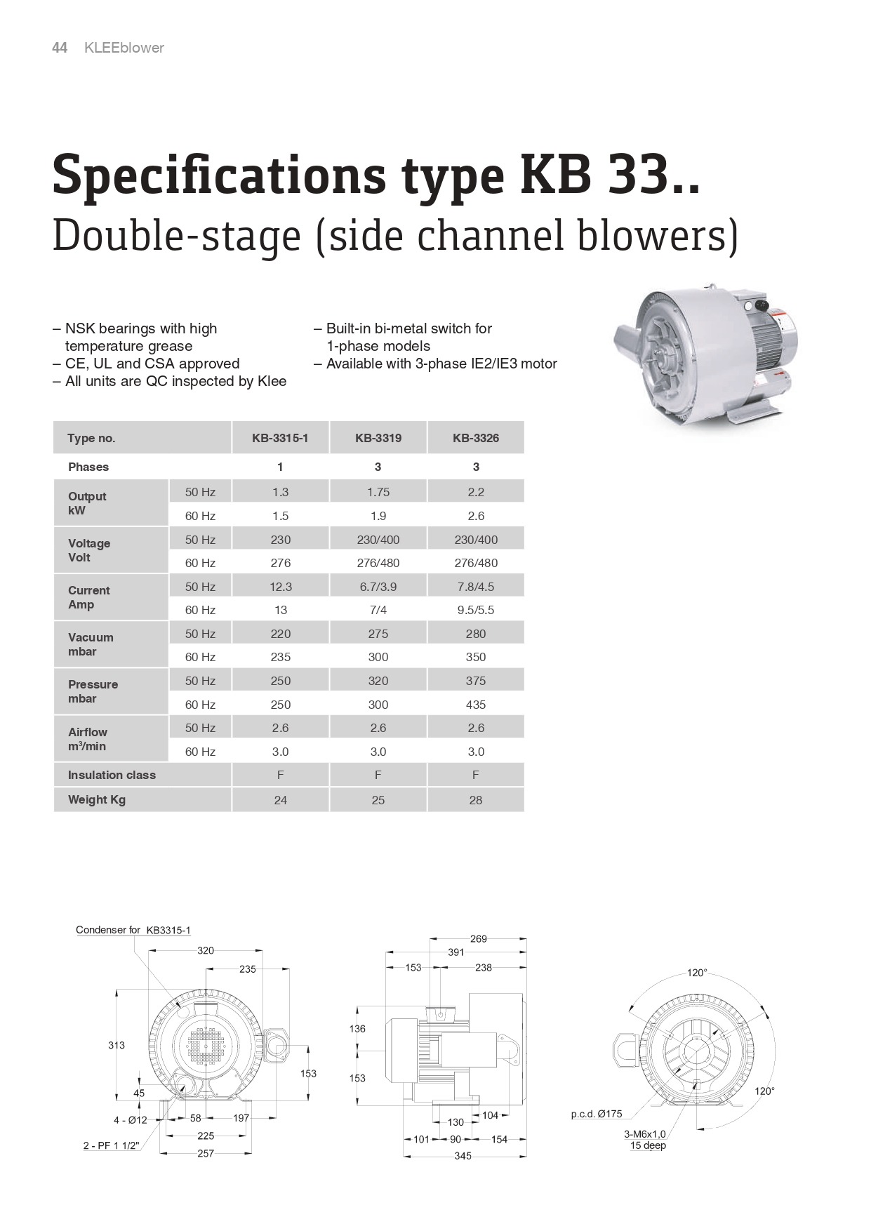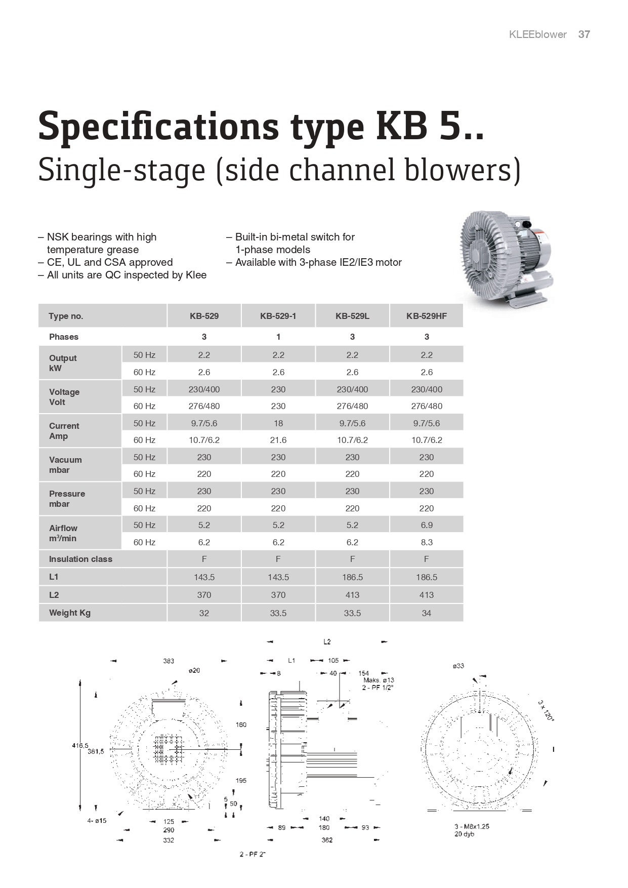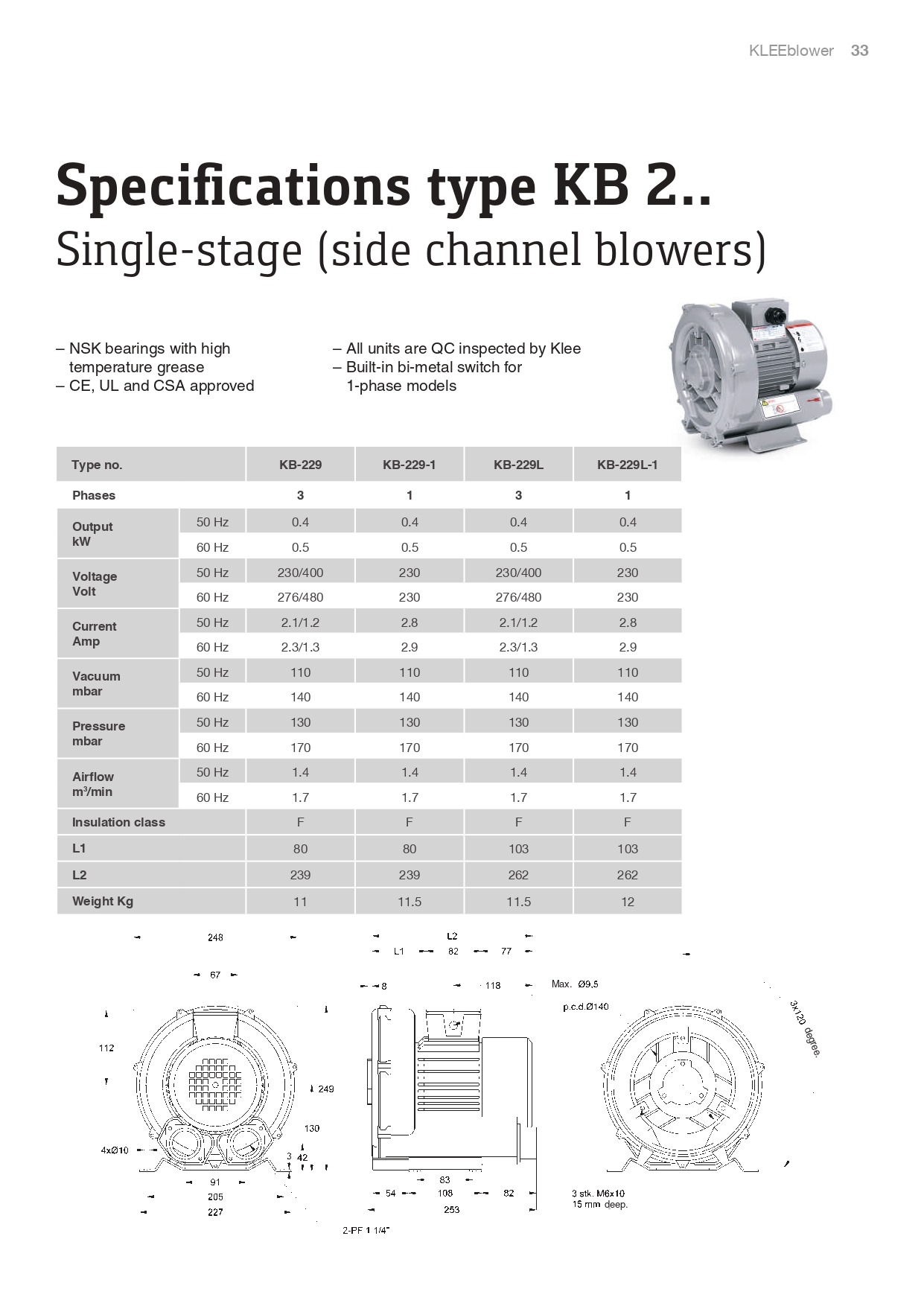 KLEE Turbo Blowers Specifi cations type KB 33