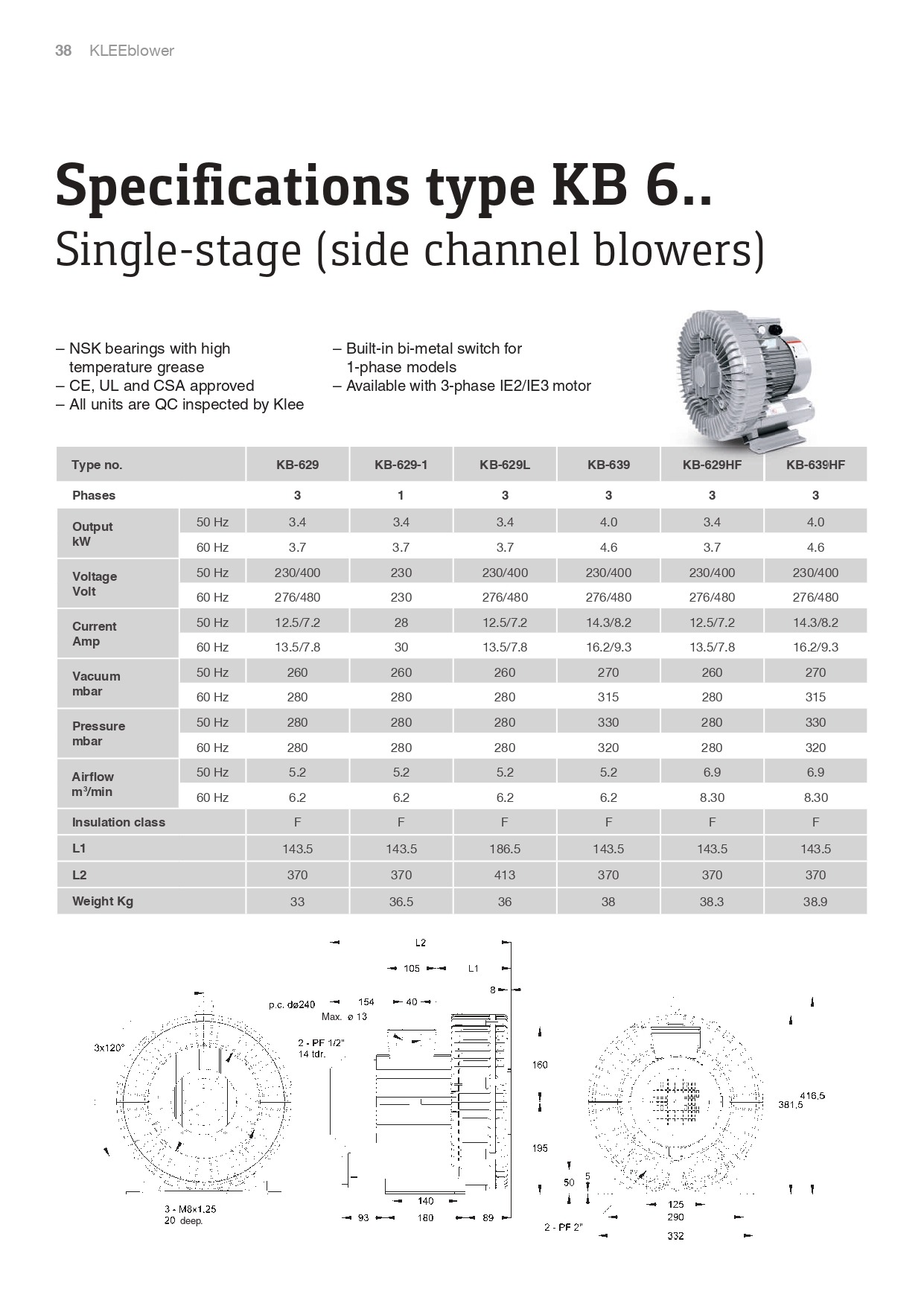 KLEE Turbo Blowers Specifi cations type KB 07-08