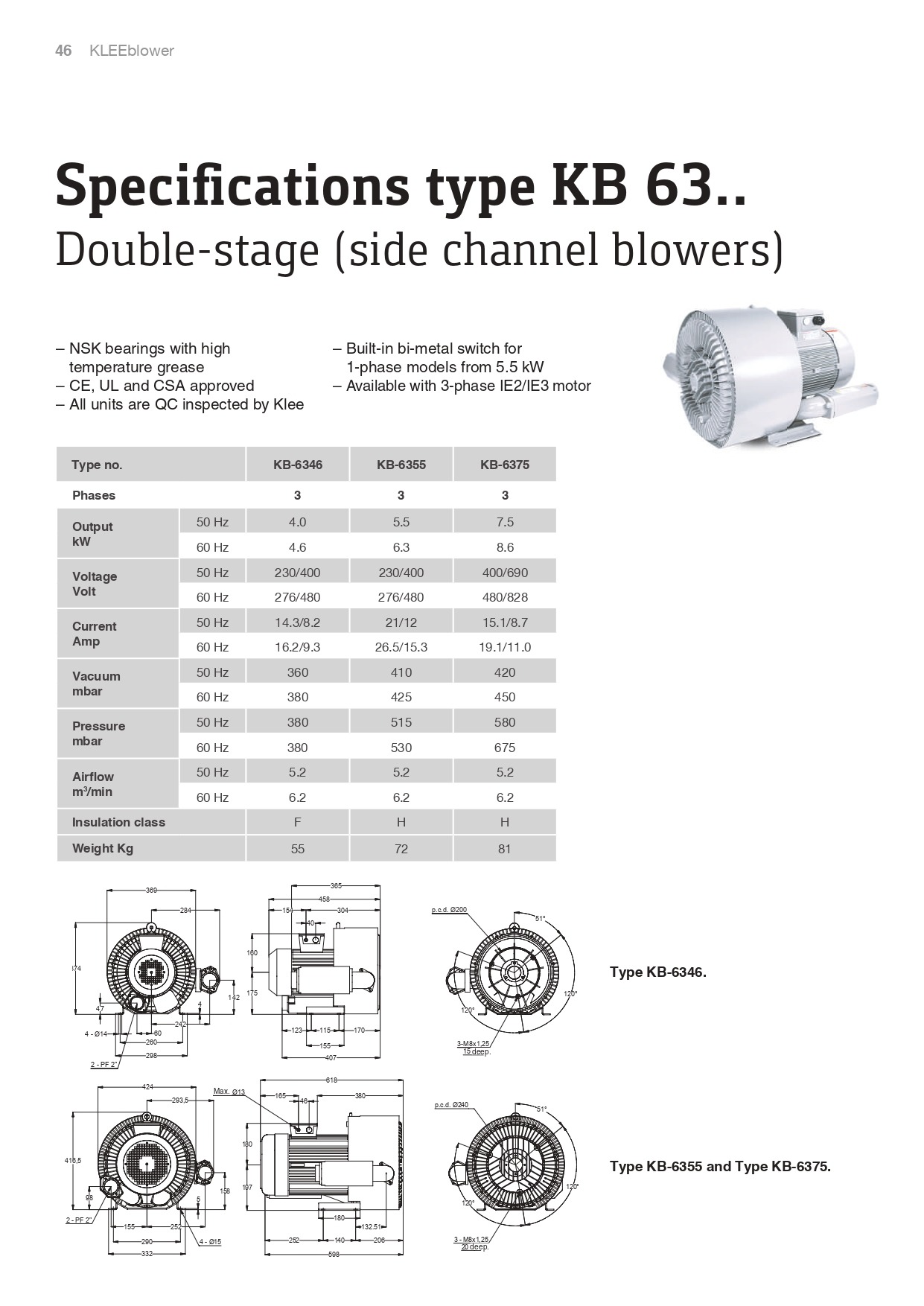 KLEE Turbo Blowers Specifi cations type KB 63