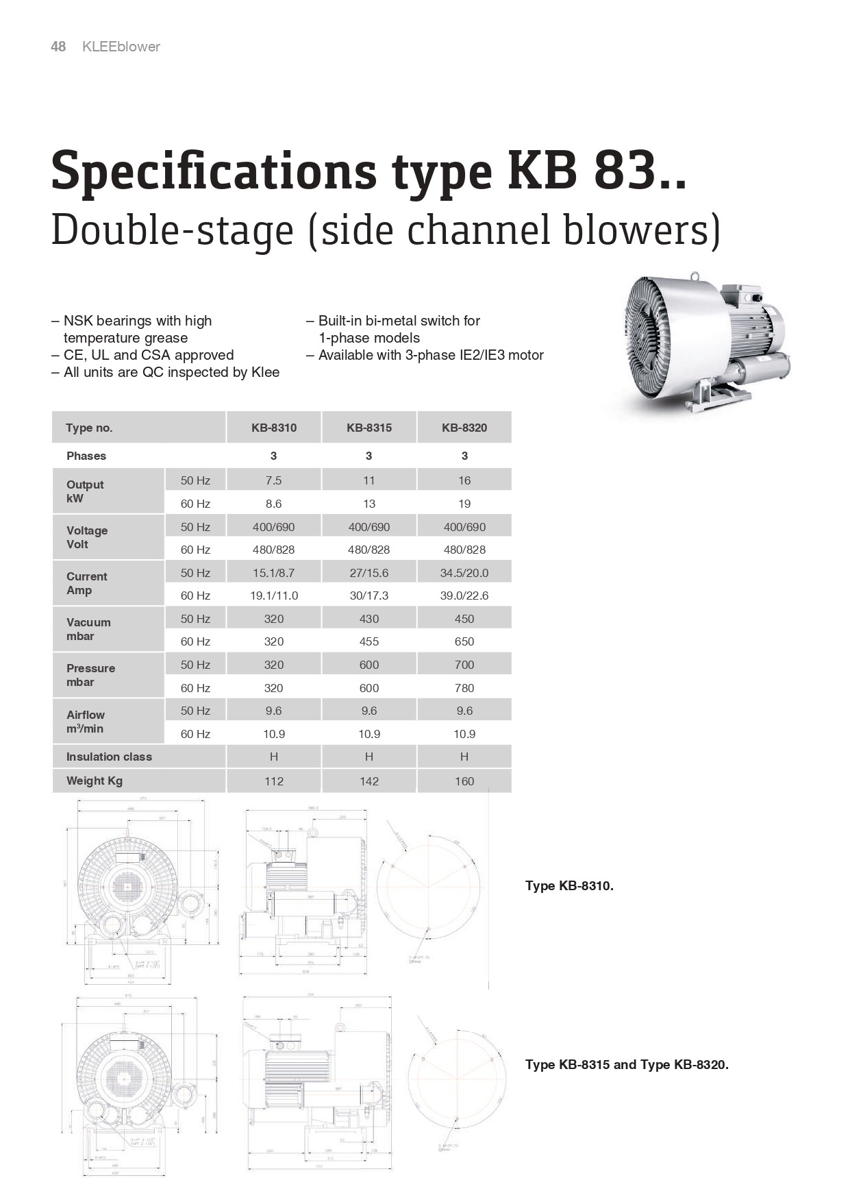 KLEE Turbo Blowers Specifi cations type KB 83
