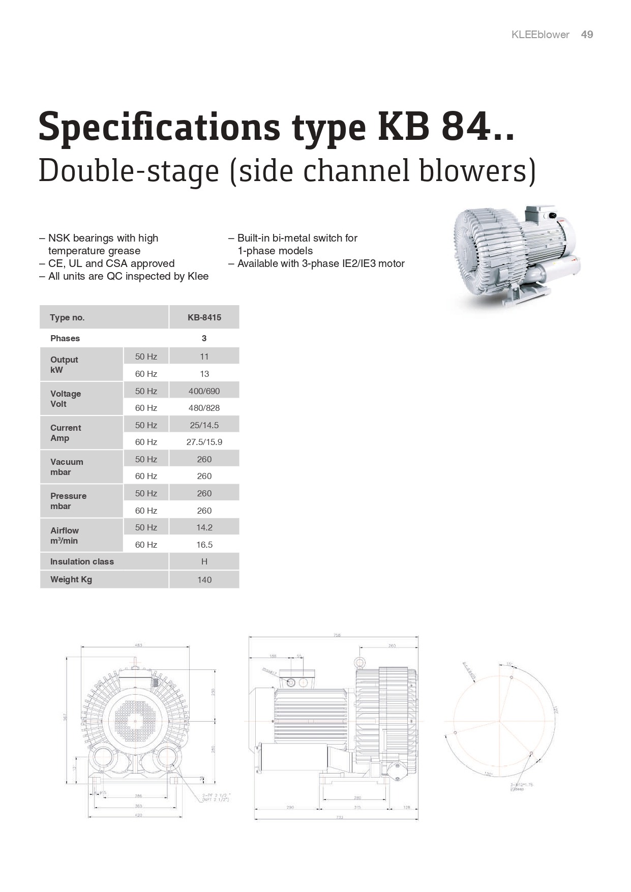 KLEE Turbo Blowers Specifi cations type KB 84
